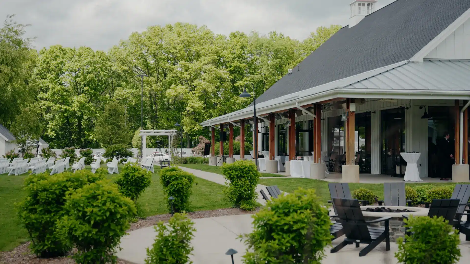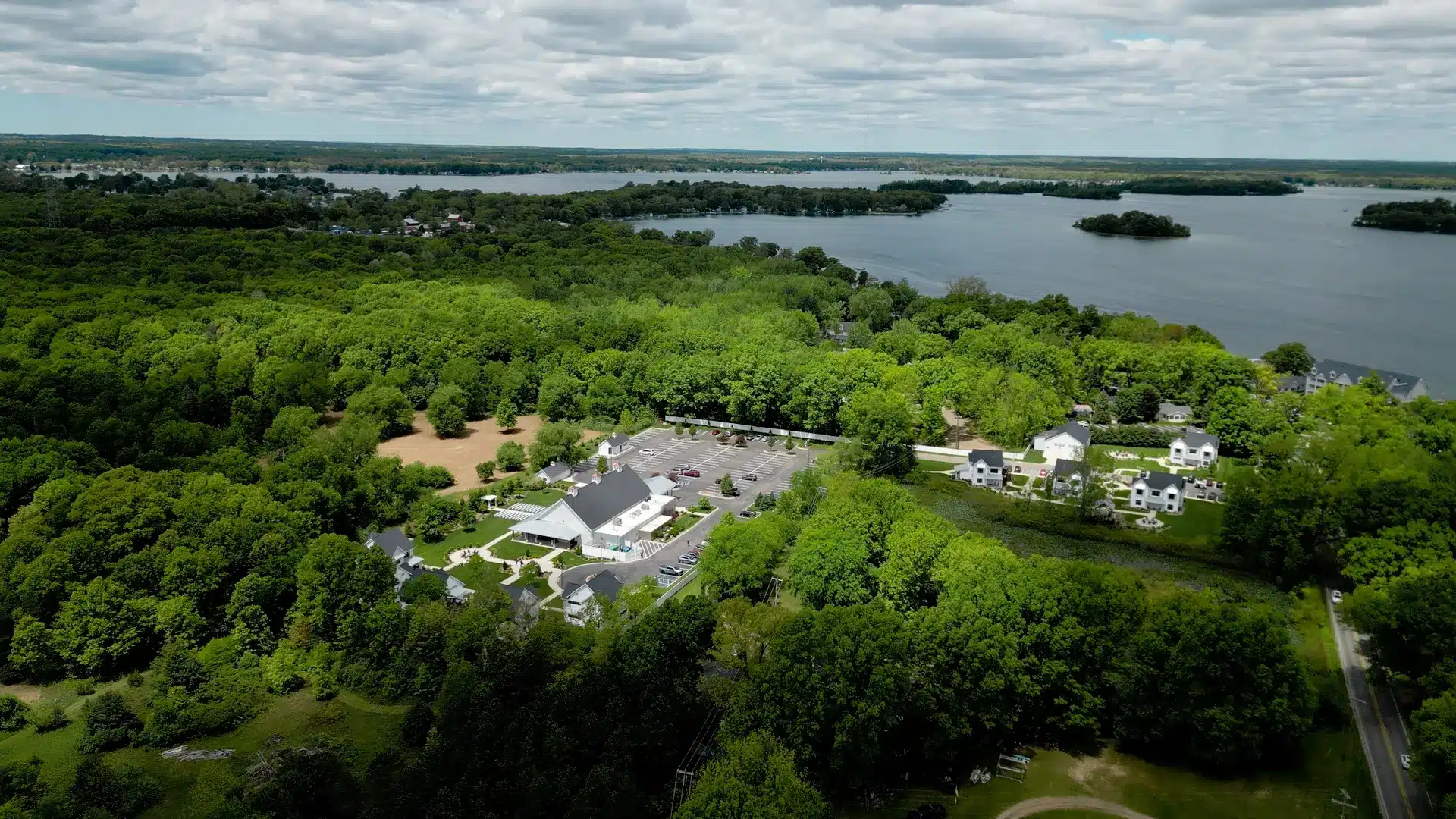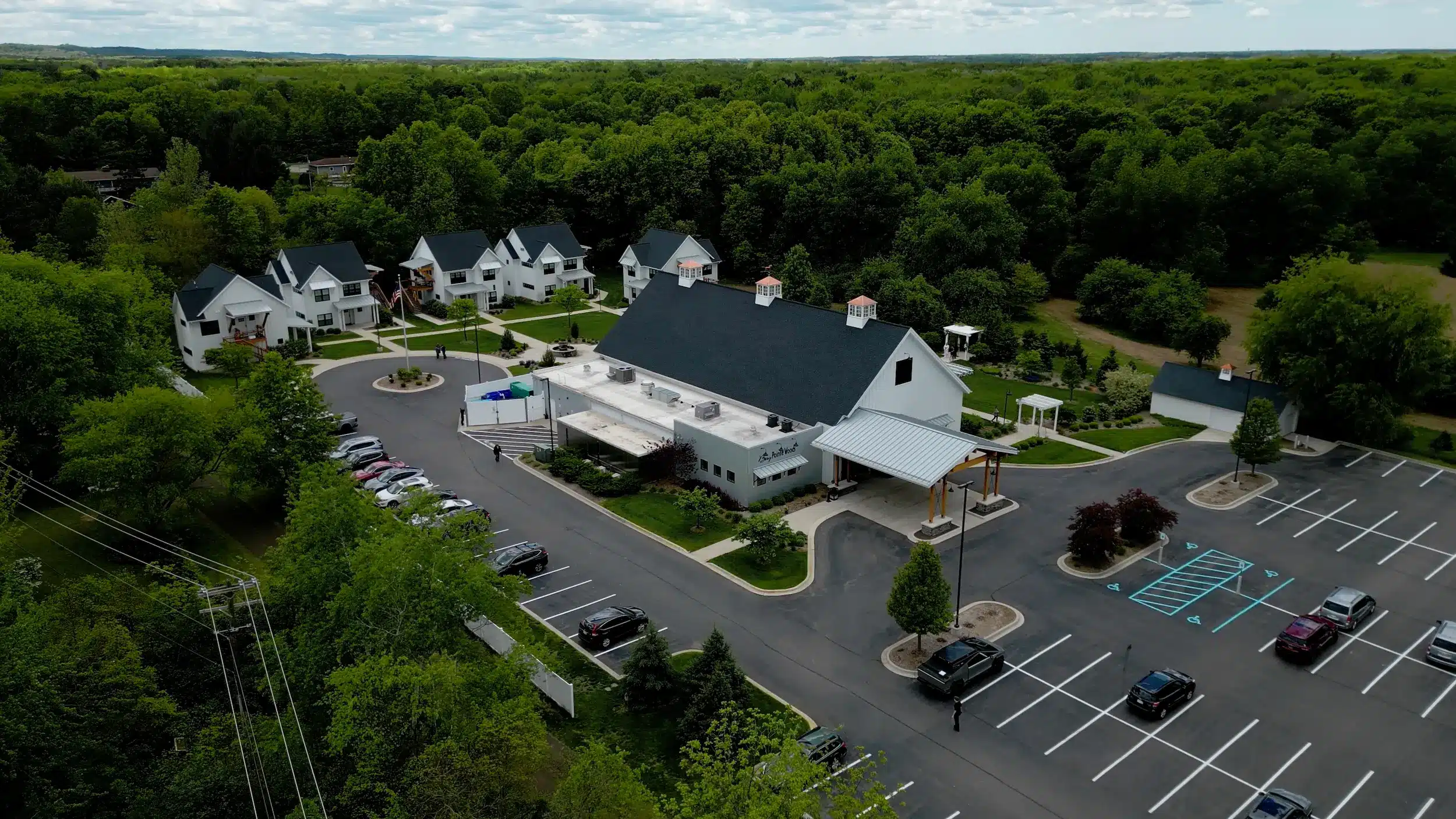 Bay Pointe Woods offers a wooded, resort-style venue in the heart of West Michigan. The forested ceremony spaces, manicured landscaping, and proximity to Gun Lake create a polished but nature-centered atmosphere. Onsite lodging makes it convenient for destination-style weekends.