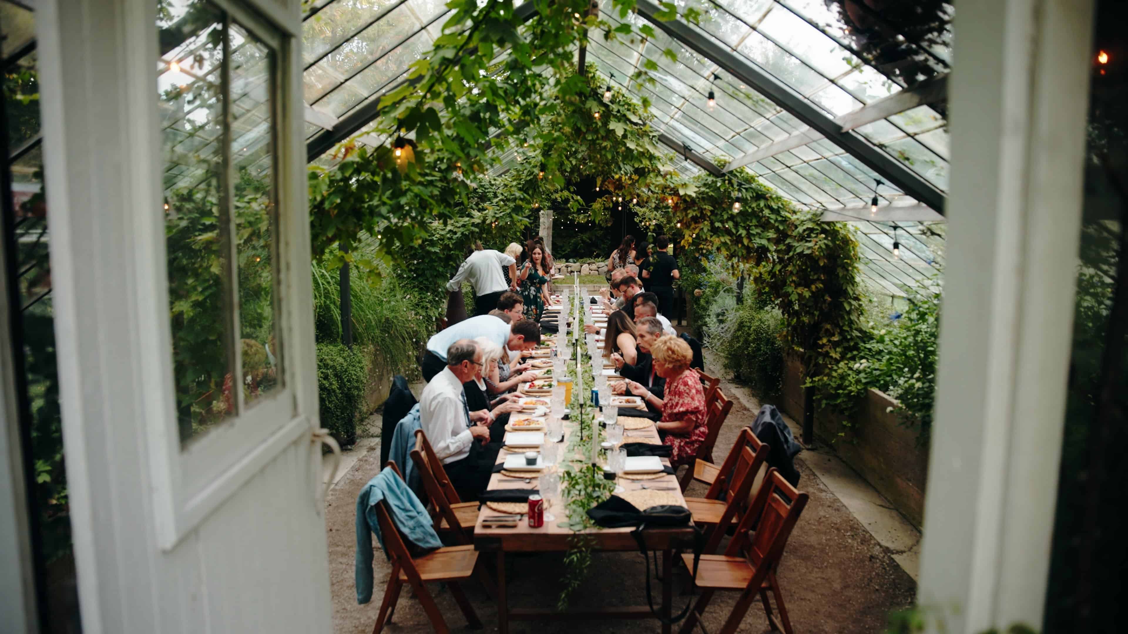 Frugthaven Farm features an orchard setting, greenhouse reception space, and expansive outdoor areas perfect for portraits. The venue’s clean, modern greenhouse provides incredible natural light, making it ideal for both photography and videography.